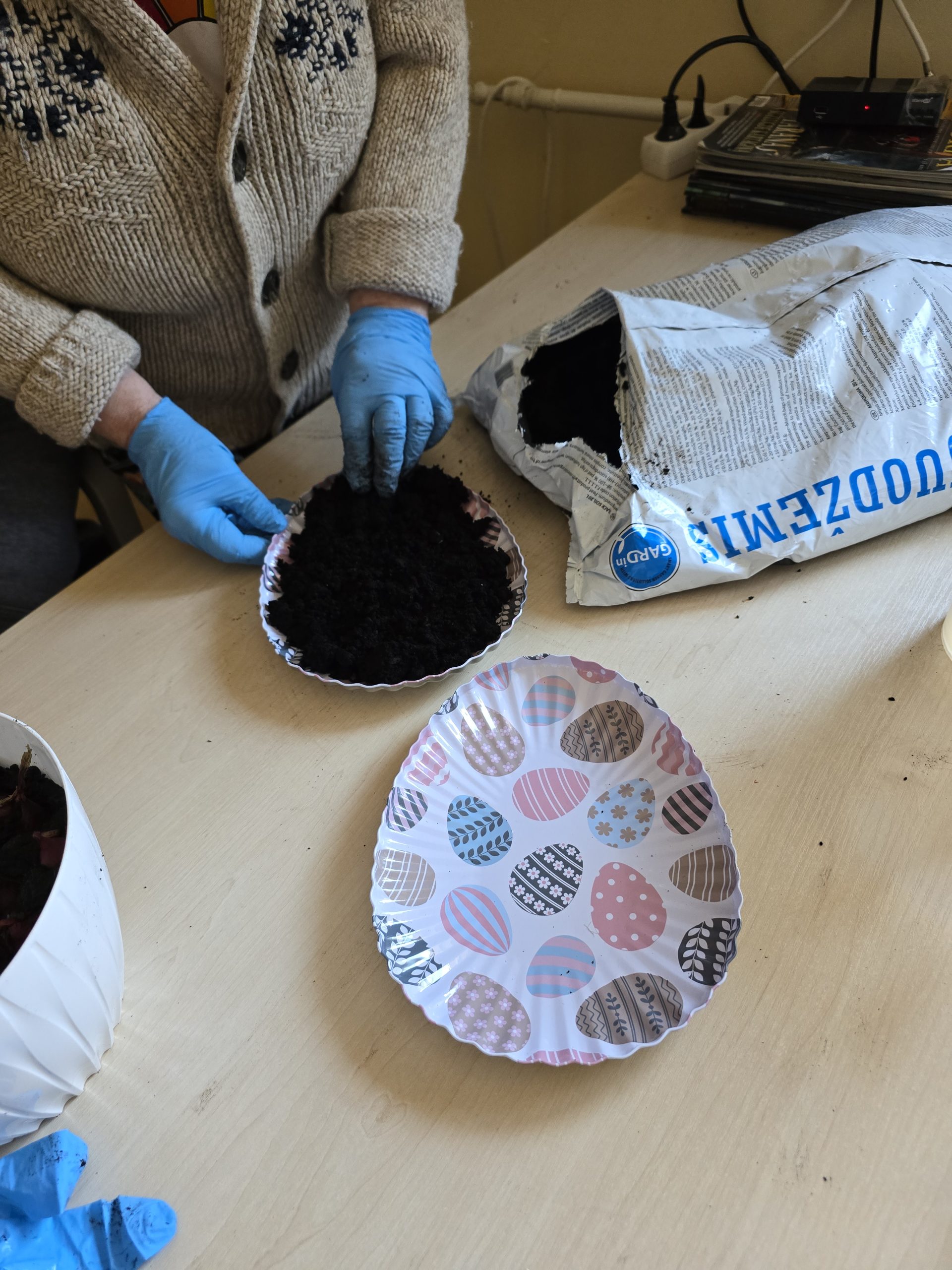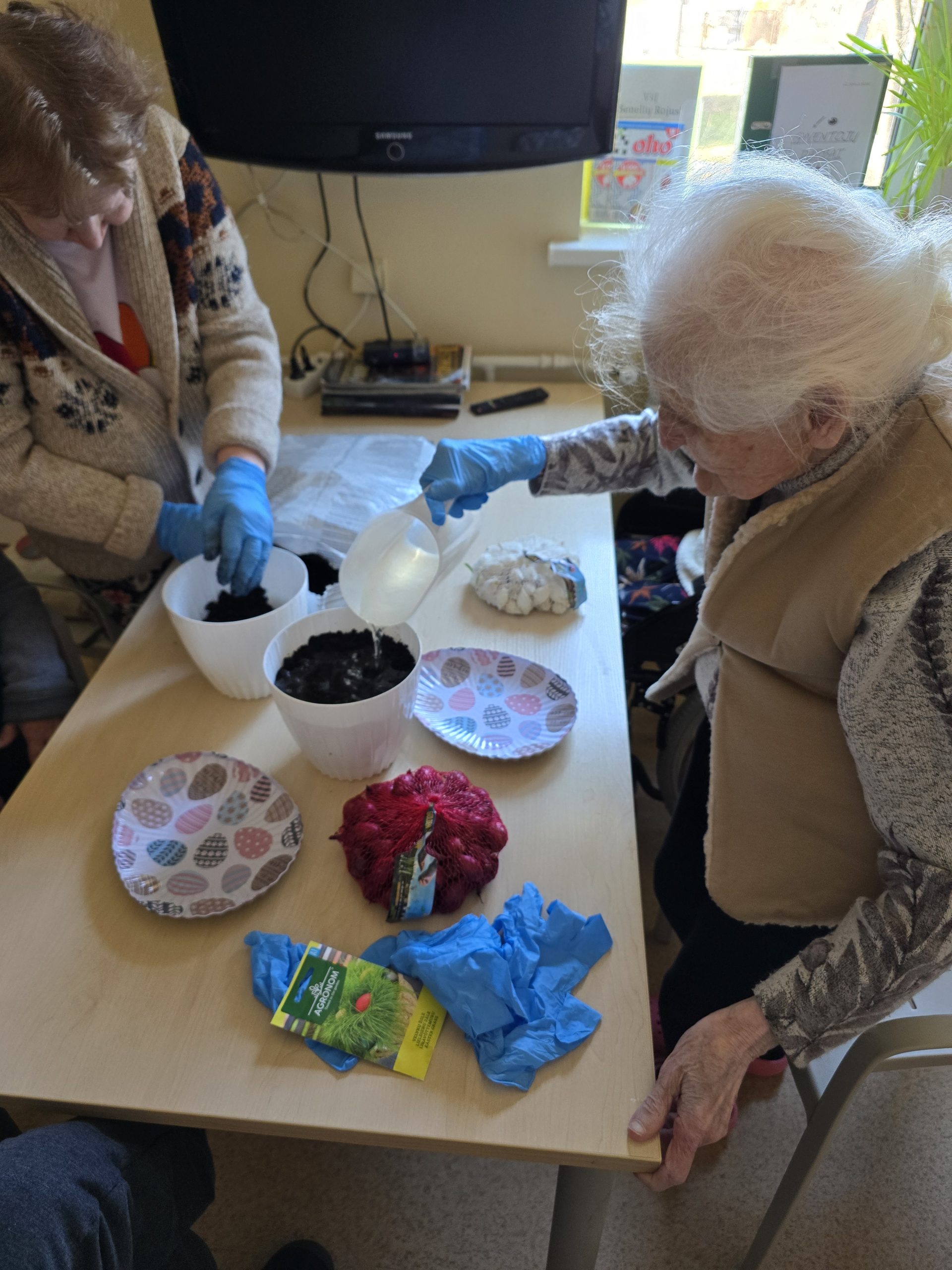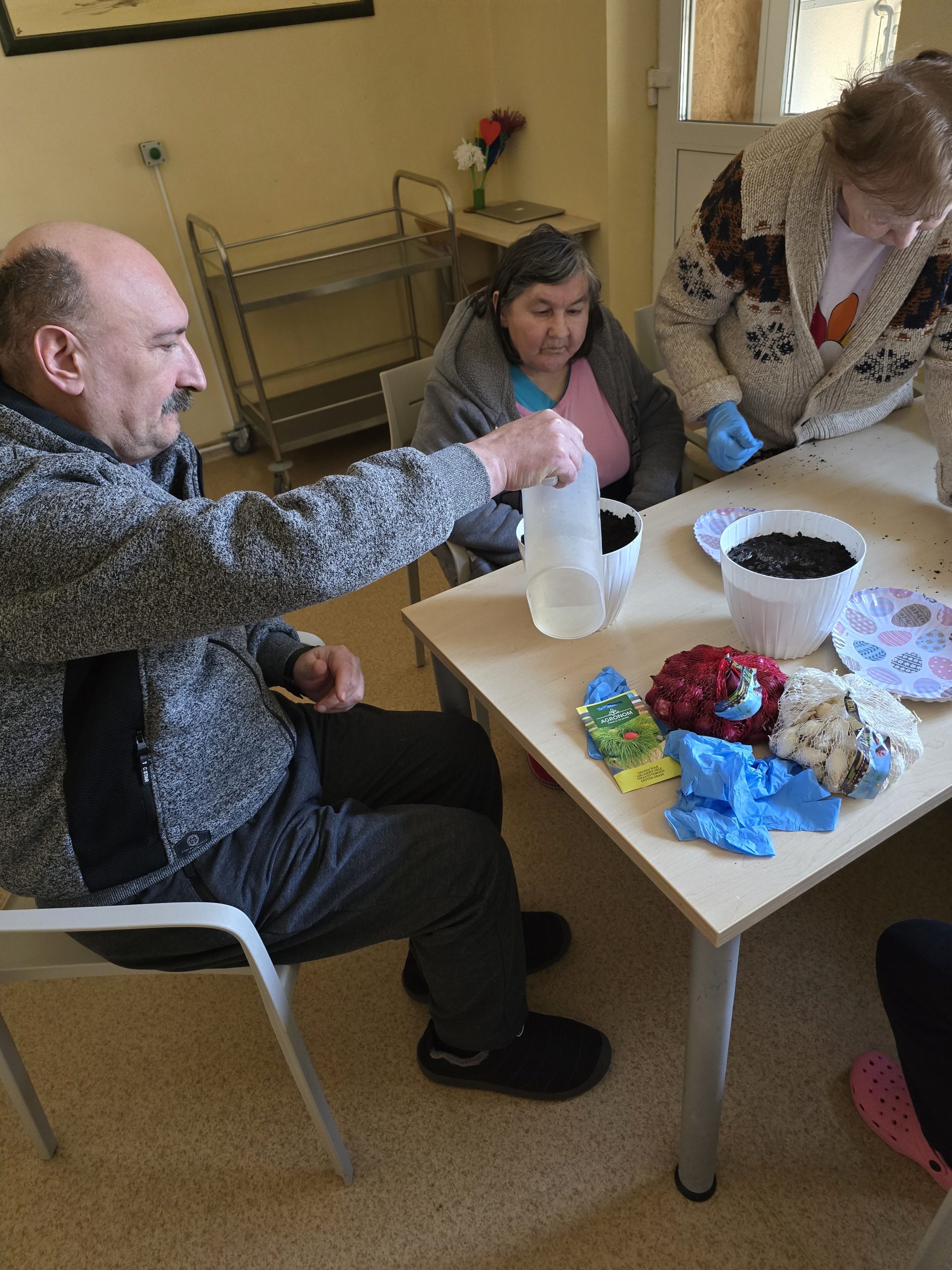 Globos namuose šiandien tvyrojo pavasariška nuotaika ir geros emocijos. Kartu su gyventojais sodinome svogūnų laiškus bei Velykinę žolę. Ši veikla ne tik suteikė daug džiaugsmo, bet ir pažadino gražius prisiminimus – gyventojai dalijosi istorijomis, kaip jaunystėje patys sodindavo daržus, prižiūrėdavo lysves ir laukdavo pirmojo derliaus. 🌱