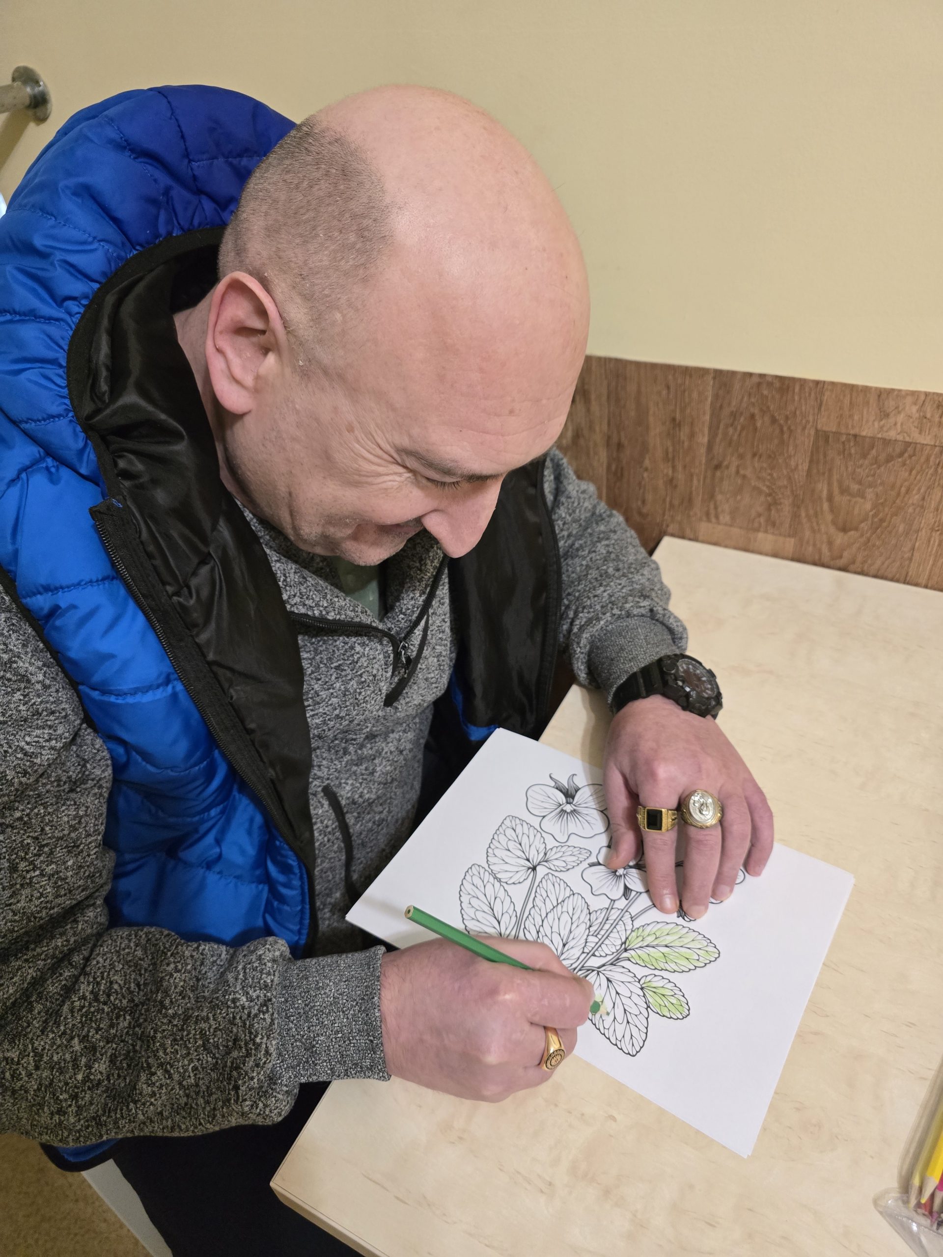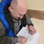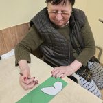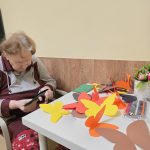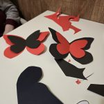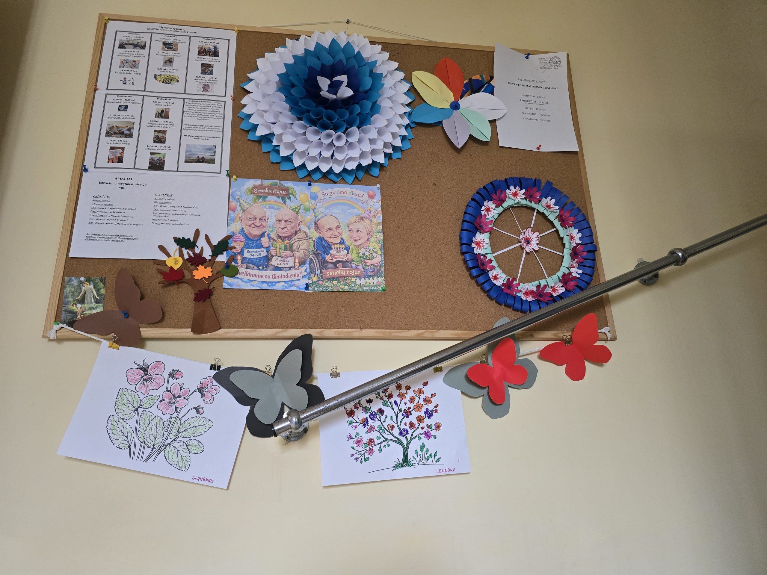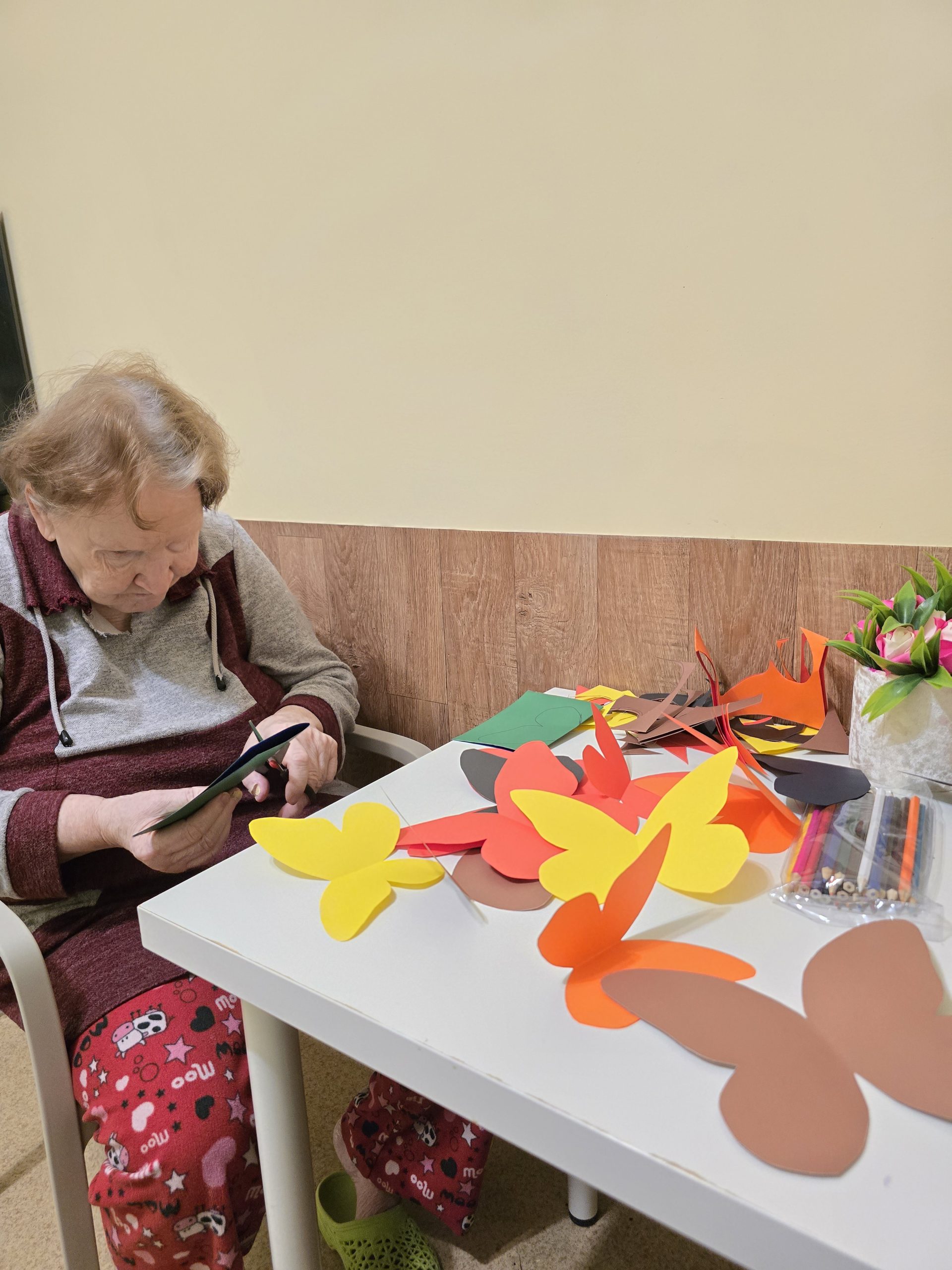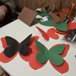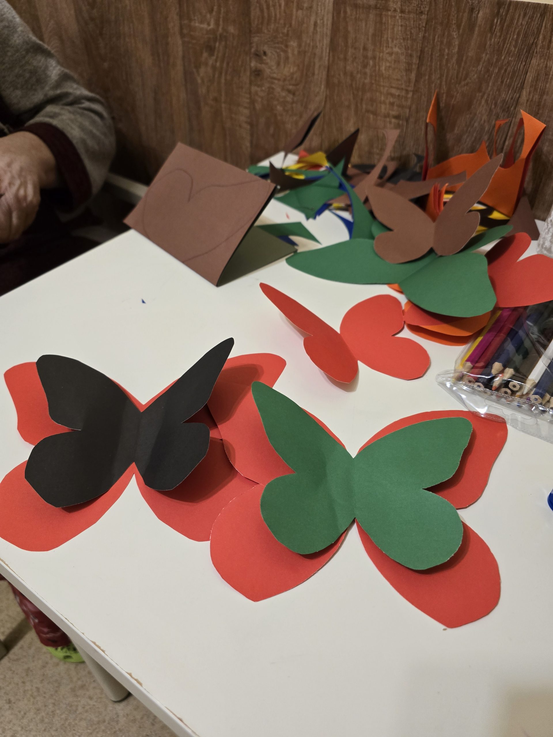 Po pietų veiklos persikėlė prie kūrybinių užsiėmimų stalo. Iš spalvoto popieriaus karpėme įvairiaspalvius drugelius. Kiekvienas kūrinys buvo savitas ir atspindėjo dalyvių fantaziją bei nuotaiką. Pagamintais drugeliais papuošėme namų erdves – jos akimirksniu tapo gyvesnės, spalvingesnės ir dar jaukesnės.