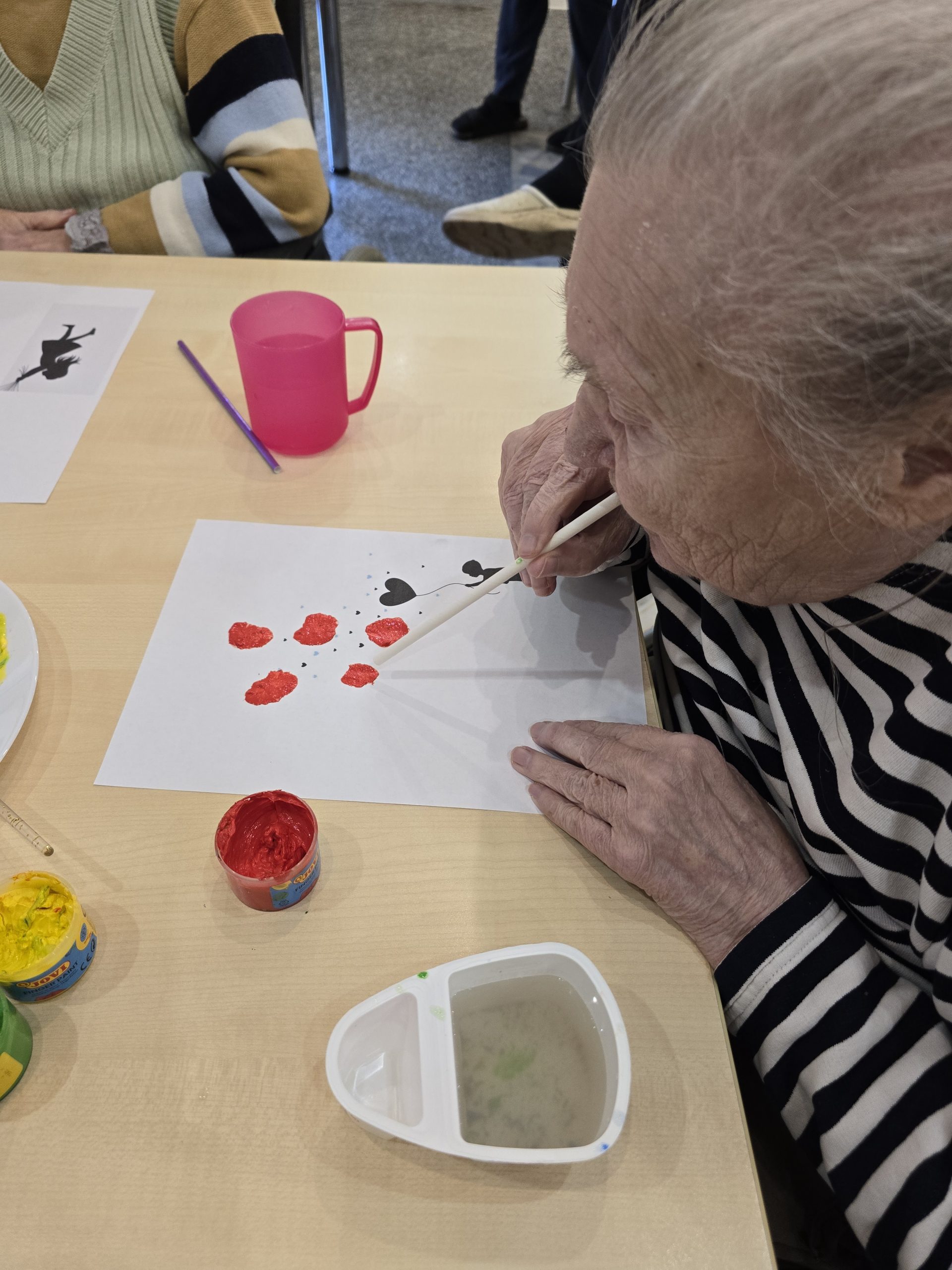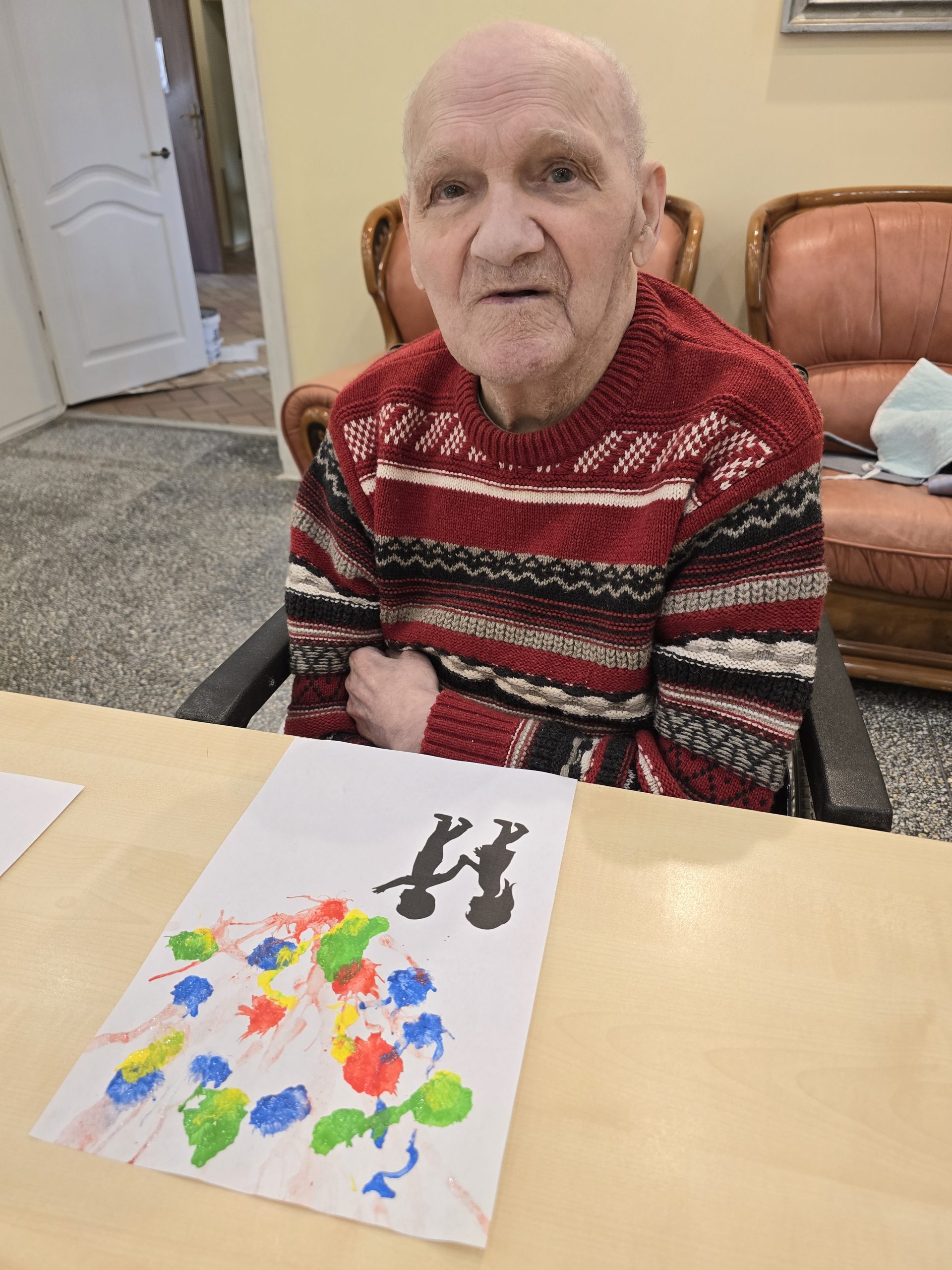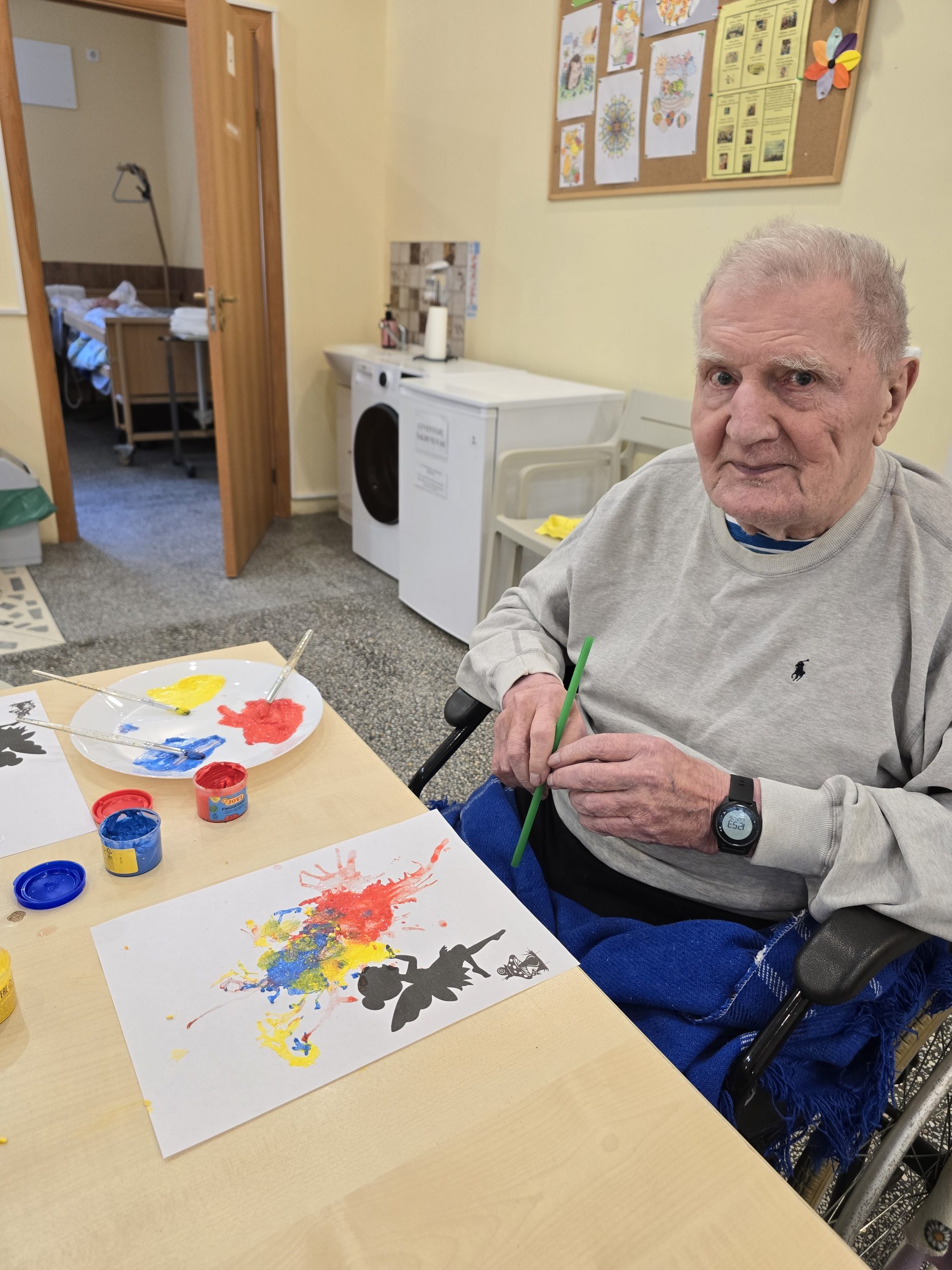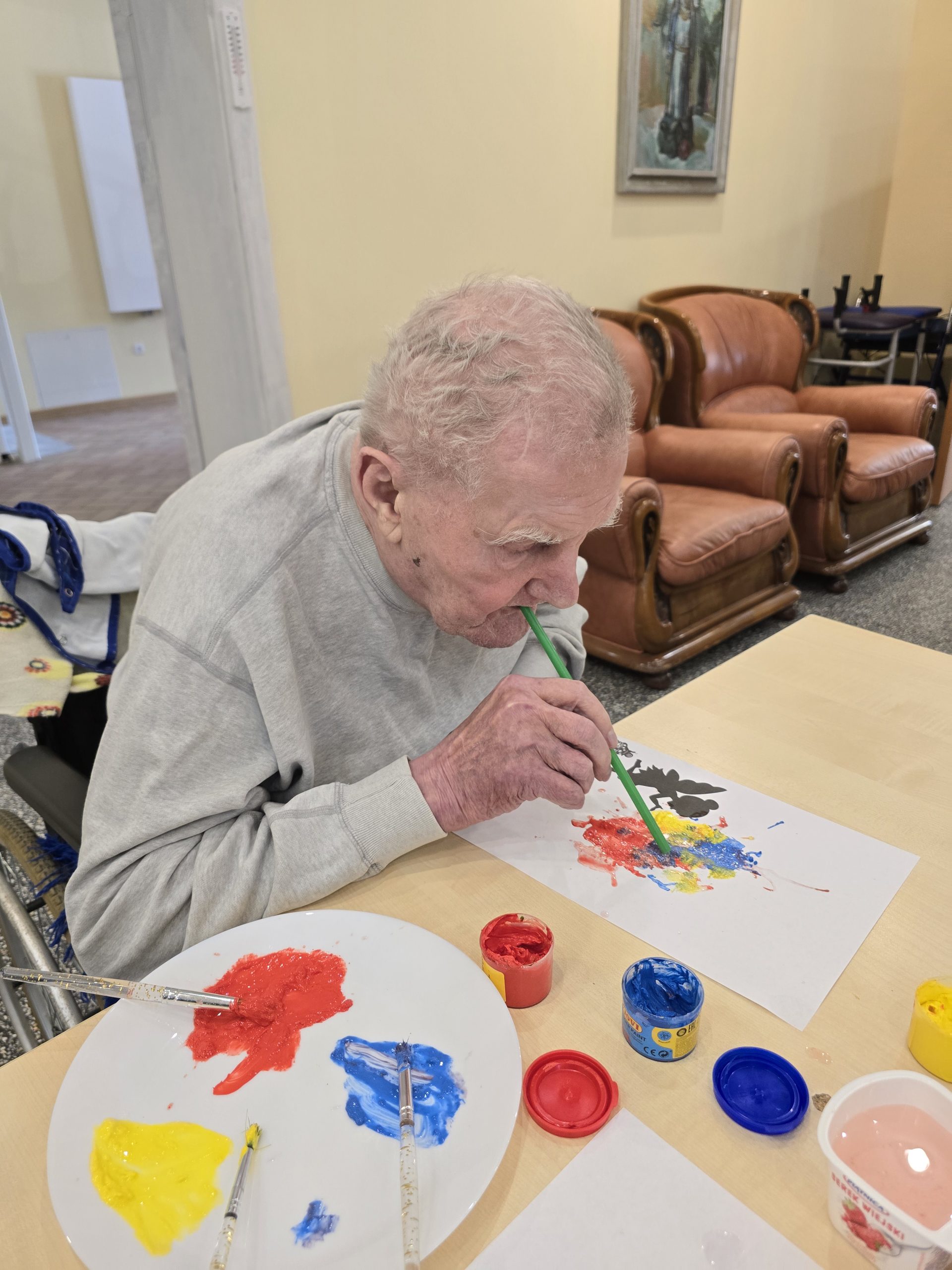 Po pietų vyko grupinis užimtumas – piešėme pūsdami per šiaudelius. Ši kūrybinė veikla suteikė daug gerų emocijų, skatino kūrybiškumą ir bendravimą tarpusavyje. Kiekviena tokia diena prisideda prie gyventojų gerovės ir prasmingo laiko praleidimo.
